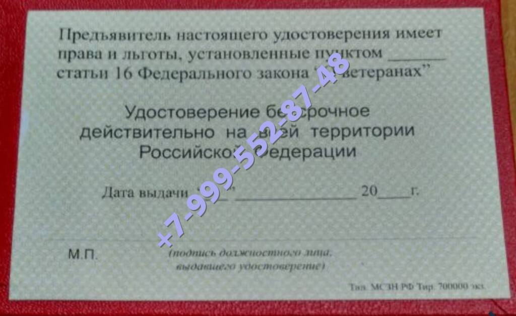 Удостоверение ветерана боевых действий 25000 руб + пересылка